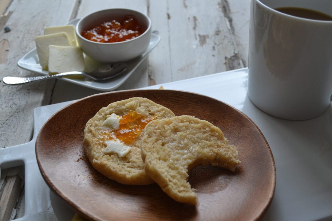 Let English muffins cool for 10 minutes before eating. Store in an air-tight container at room temperature for three days or freeze for up to a month.