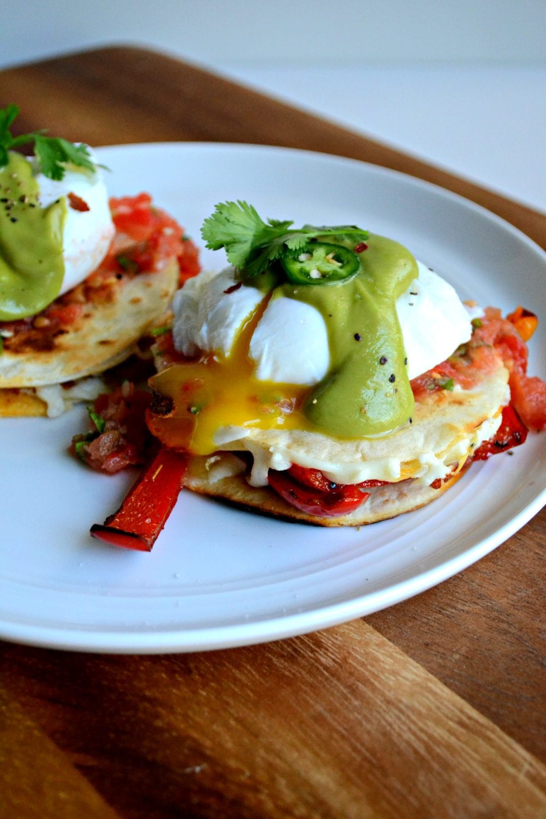 Fajita Vegetable Quesadillas with Poached Eggs and Avocado Hollandaise #brunchweek