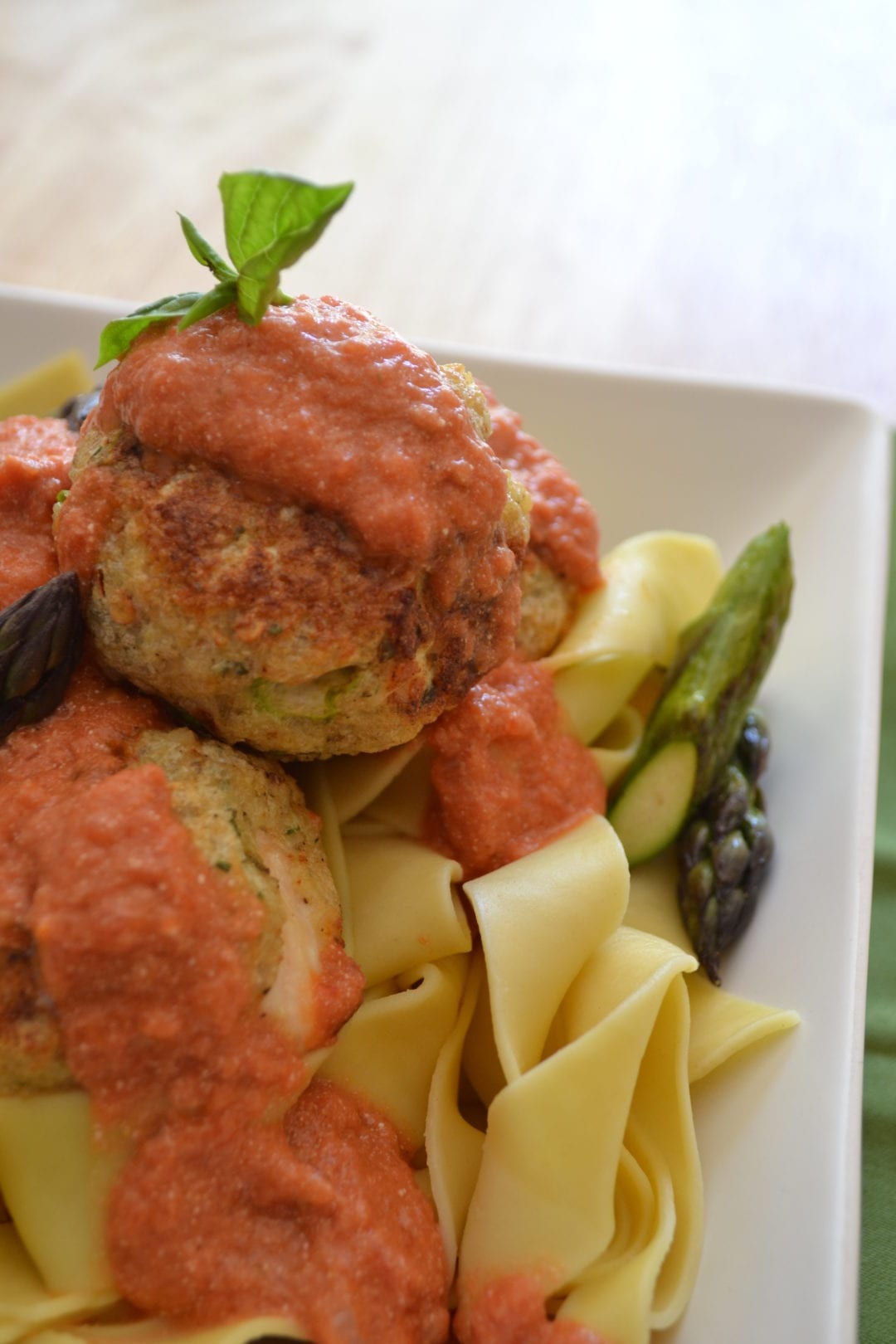 For a heartier option, serve the meatballs, sauce, and asparagus with some thin whole wheat spaghetti noodles or fat egg noodles. Top with some fresh basil and a little bit of grated parmesan and slurp away!
