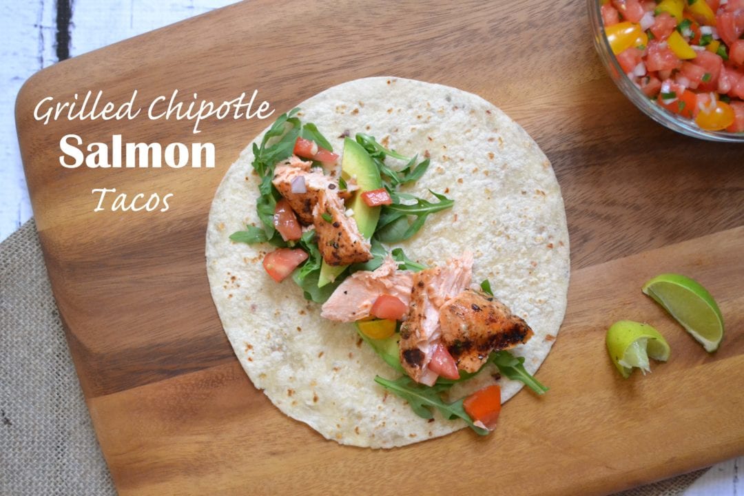 Cut salmon filets into small chunks and place on a tortilla along with whatever topping you desire.