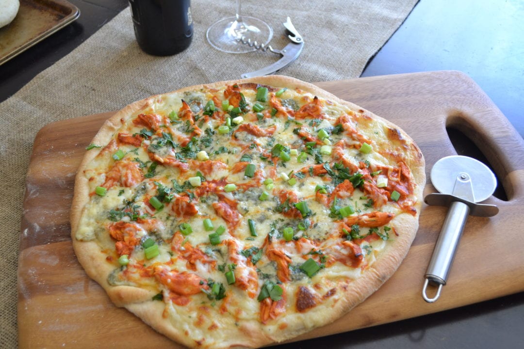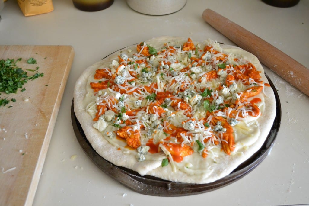 We now have this on a monthly basis. My pizza dough recipe makes two 12-inch pizzas, so we usually have premade dough frozen just waiting to be topped with buffalo chicken, pepperjack cheese sauce, and blue cheese. If you aren’t a wing fan, try it in pizza form—you won’t be disappointed. Even your college self would agree with you!