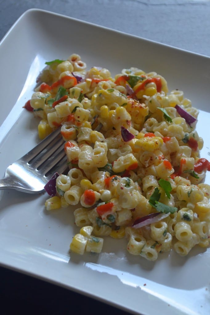 This would be the perfect summer BBQ dish because it isn’t your traditional boring pasta salad. It has a kick—and elote is really fun to say!