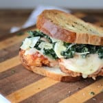 Chicken parm and Caesar salad are like the food world’s Friends and Seinfeld. I don’t know who would be who, but together they make magic! I combined them into one gloriously messy sandwich. Frying your own chicken is a must for this recipe. You need that super crispy breading to stand up to the Caesar salad and marinara. Oh and just to take this to the next level, I put the whole thing on toasted garlic bread. If you have some of that store bought frozen Texas toast garlic bread, that would work here too!