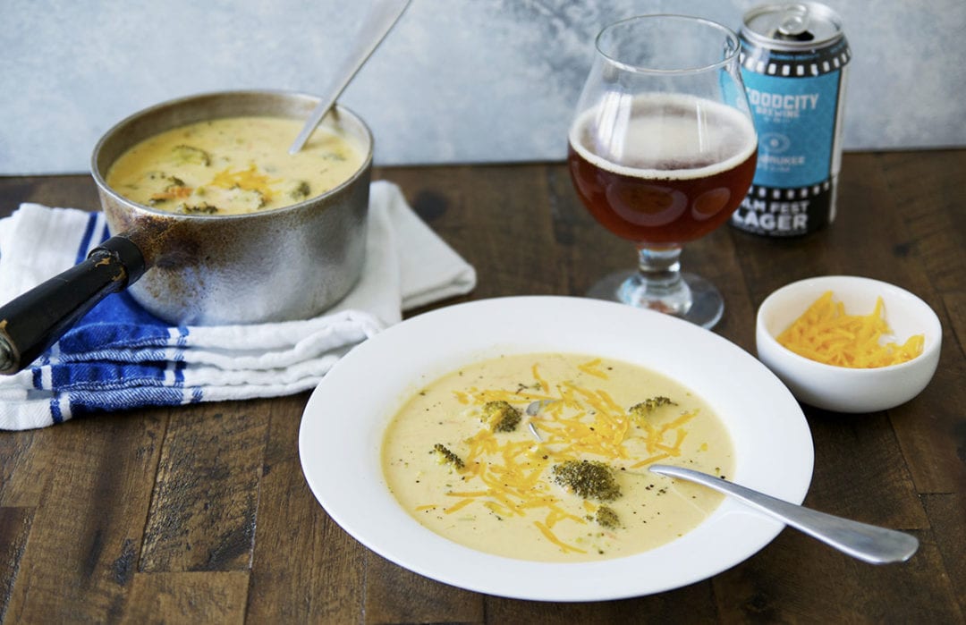 Slowly stream in the heavy cream, beer, and stock while whisking. Gently increase the flame to medium. Bring to a simmer.