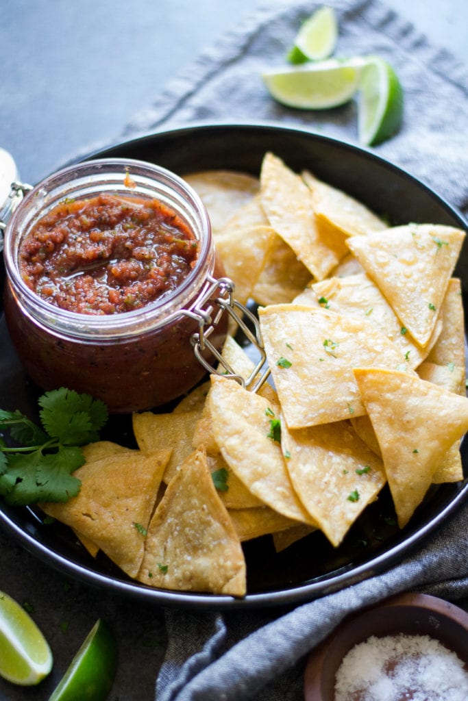 The secret to the amazingness of this recipe is a can of fire-roasted diced tomatoes. From there you can add in jalapeño or a canned chipotle pepper. If you want to mix it up, add in some pineapple or mango for a little sweetness. This salsa can be changed to fit your demands.