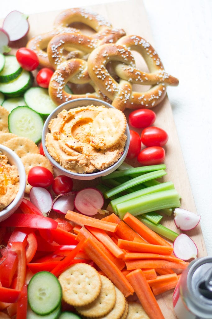 - Dip goes well with soft pretzels, crackers, sliced veggies, and would be a great addition to any meat and cheese board.