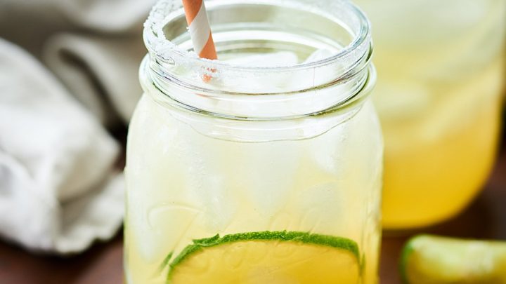 A skinny low carb margarita made using infused tequila, a small amount of sweetener, and a little lime juice.