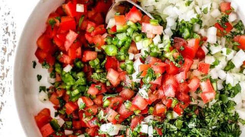 Roasted Roma tomatoes, tomatillos, and jalapeño pepper are pureed with onion, garlic, cilantro, cumin, lime juice, salt, and pepper for one amazing homemade salsa.