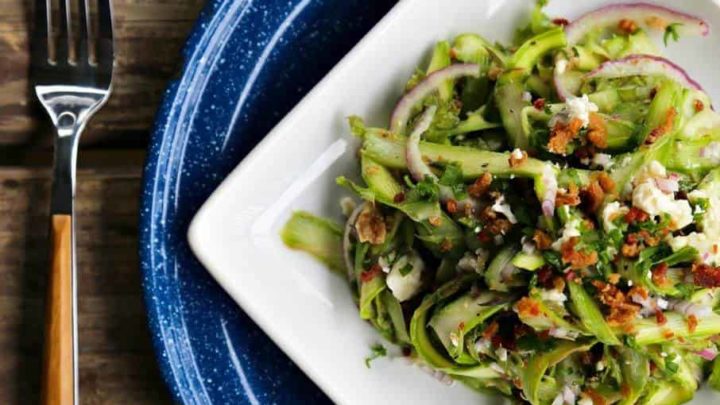 Shaved Asparagus Salad with Bacon, Blue Cheese, and Buttermilk Vinaigrette