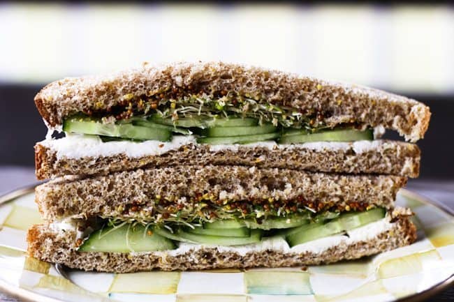 Cucumber, Cream Cheese, and Sprout with Grainy Mustard Sandwiches