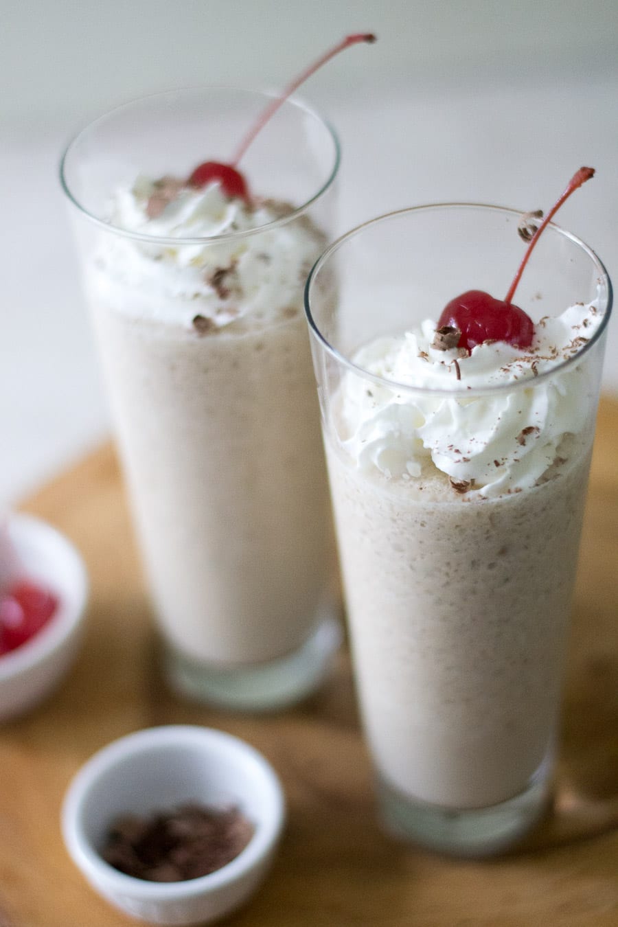 I like to top it with some whipped cream, a cherry, and chocolate shavings.